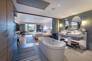 Lüks ve konforu bir araya getiren alanları ve içten servisleri ile de dokunduğu herkese canlılık vermeyi amaçlayan Akra Fethiye The Residence Tui Blue Sensatori, şık ve modern detaylarla dolu odalarında ayrıcalıklı bir konaklama deneyimi yaşatıyor.
